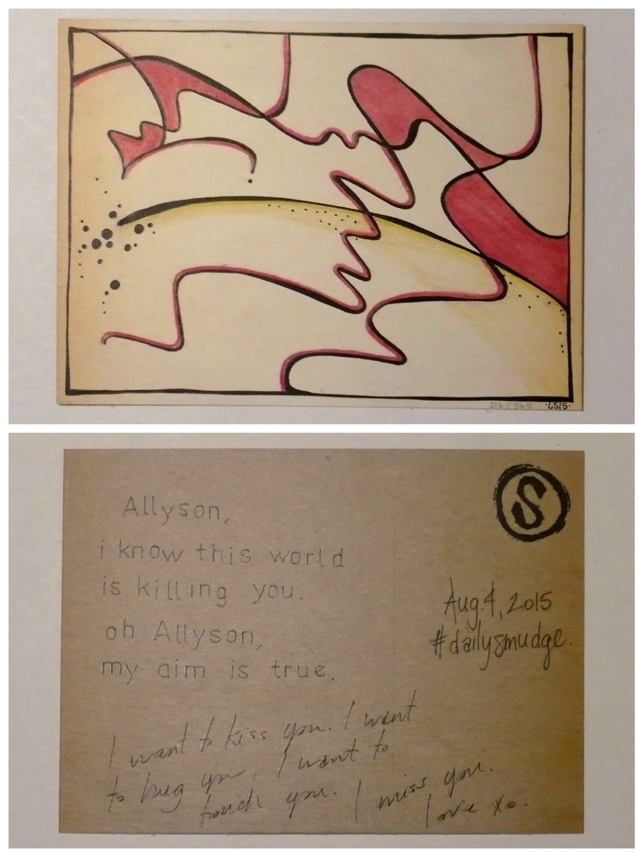 Day 216 of 365 #dailysmudge Share this: Share on X (Opens in new window) X Share on Facebook (Opens in new window) Facebook Like Loading... Published by Allyson Proulx Allyson Proulx is a writer, artist, and speaker. Playing Paper is the name of her social enterprise that offers abolitionist workshops, and note passing services. View all posts by Allyson Proulx